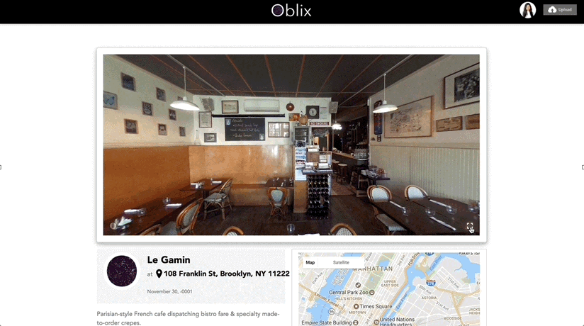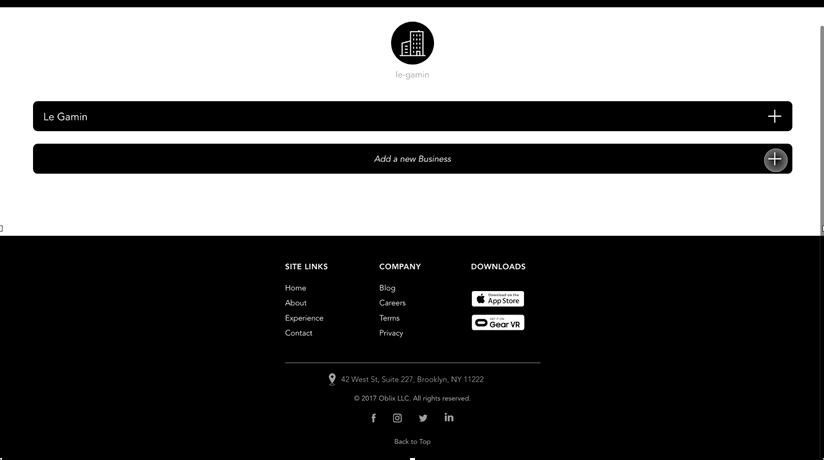 Oblix 1.0 consisted of a web portal, a mobile app, and a Gear VR app, each tailored to different user preferences and accessibility levels. The web portal allowed users to upload their own 360° photos and videos, which could be geo-tagged to specific landmarks or addresses. This user-generated content created a rich and diverse library of virtual experiences, much like a Yelp for VR. In addition, businesses had dedicated pages to promote themselves, allowing users to add content and engage with their offerings.