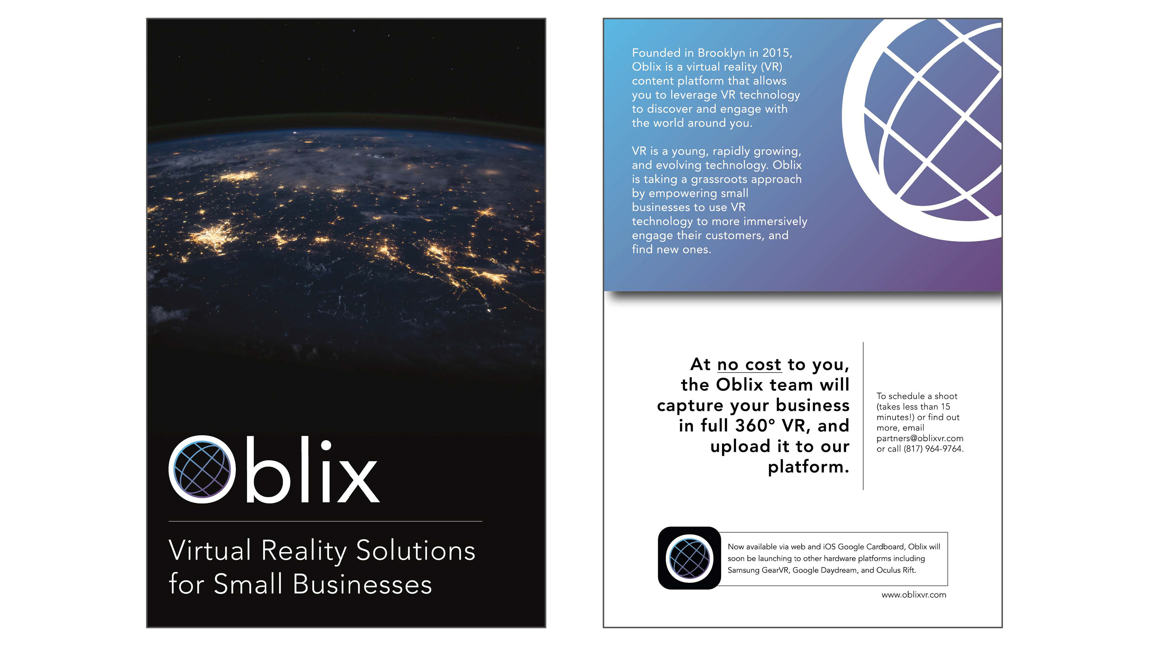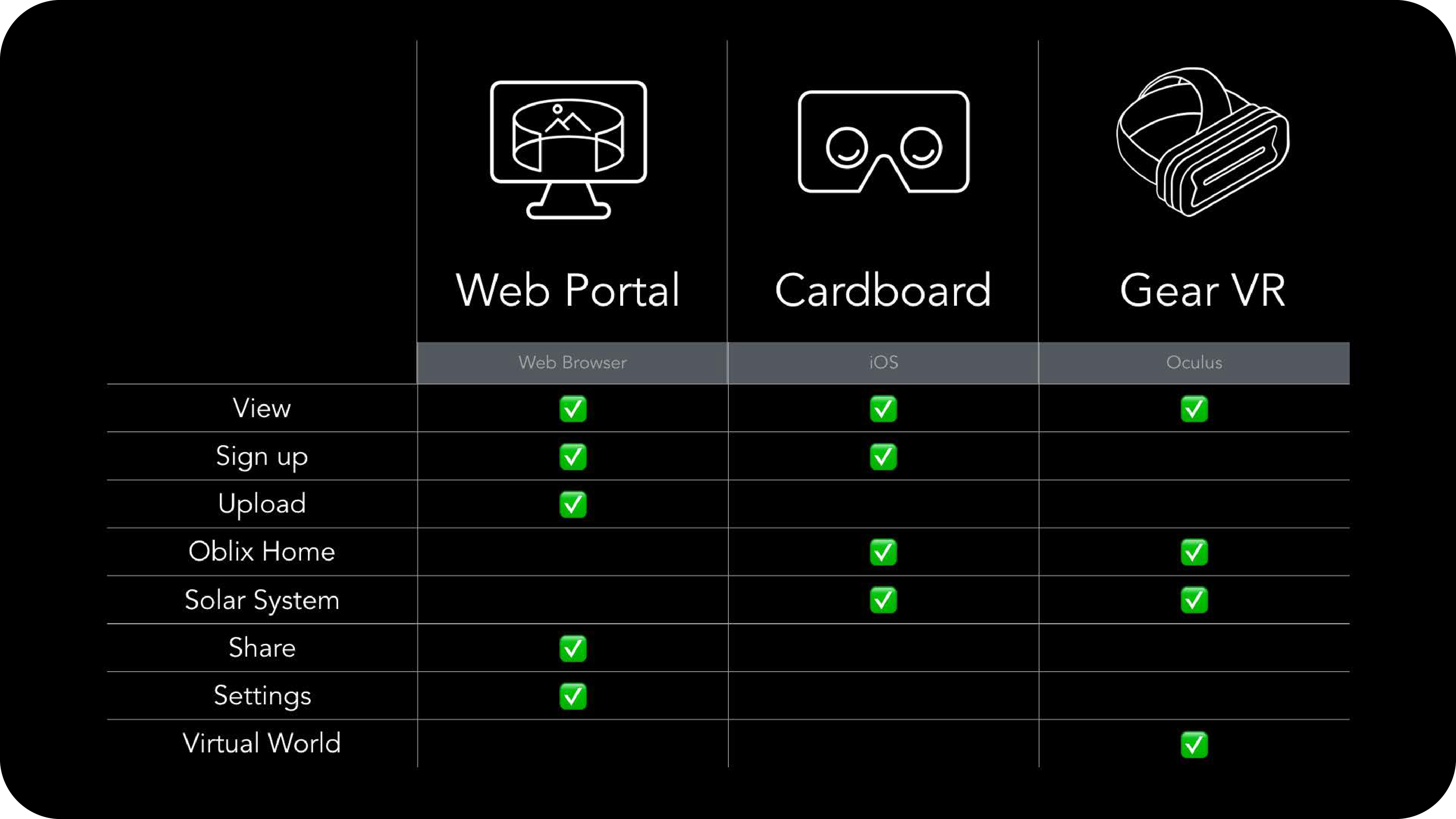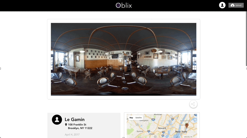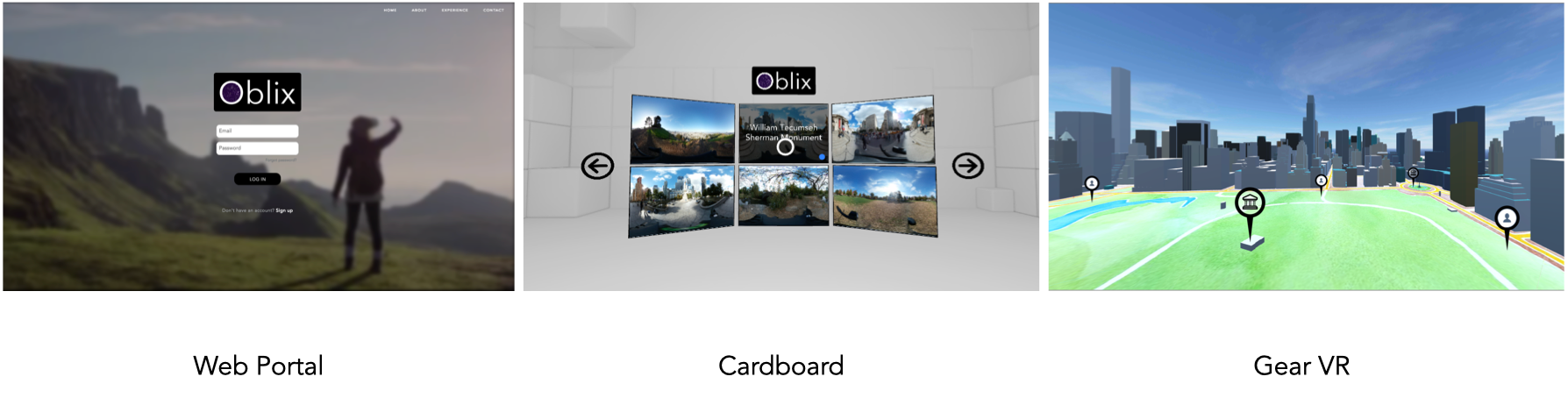 Oblix VR is a pioneering startup that has created a social platform for Virtual Reality (VR). Designed for those seeking immersive engagement, Oblix VR allows users to explore and interact with the virtual earth, leveraging user-generated 360° media that is geo-tagged to real-world landmarks and addresses. Through Oblix VR's web portal and mobile app, users can upload their own 360° photos and videos as well as view others. In addition to engaging with content, and taking virtual tours of museums and landmarks, with the Gear VR app, they can participate in multiplayer experiences, live events, and geo-themed games.