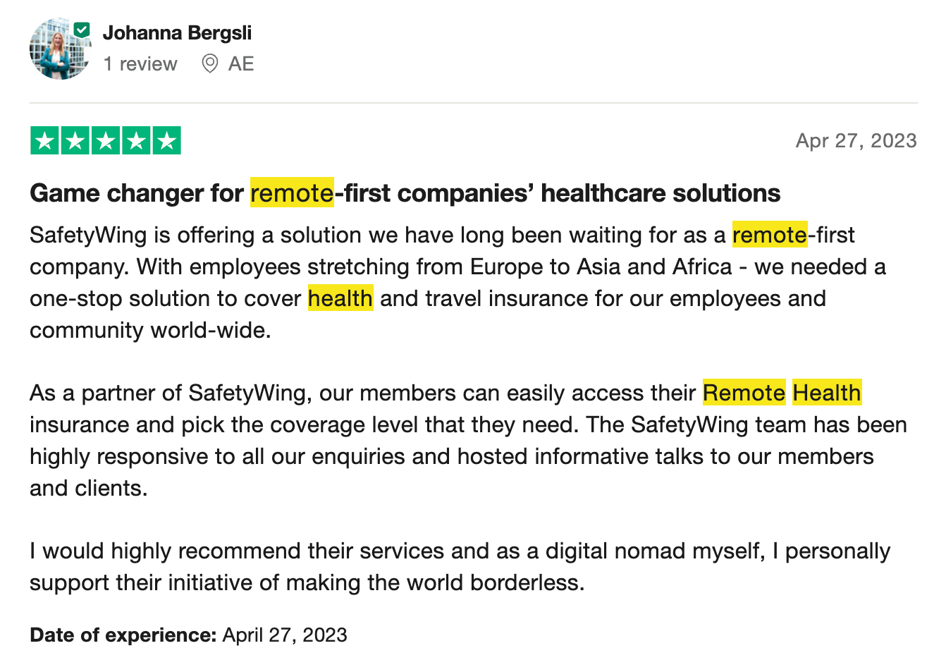 "If SafetyWing is a planet, its population is birds."