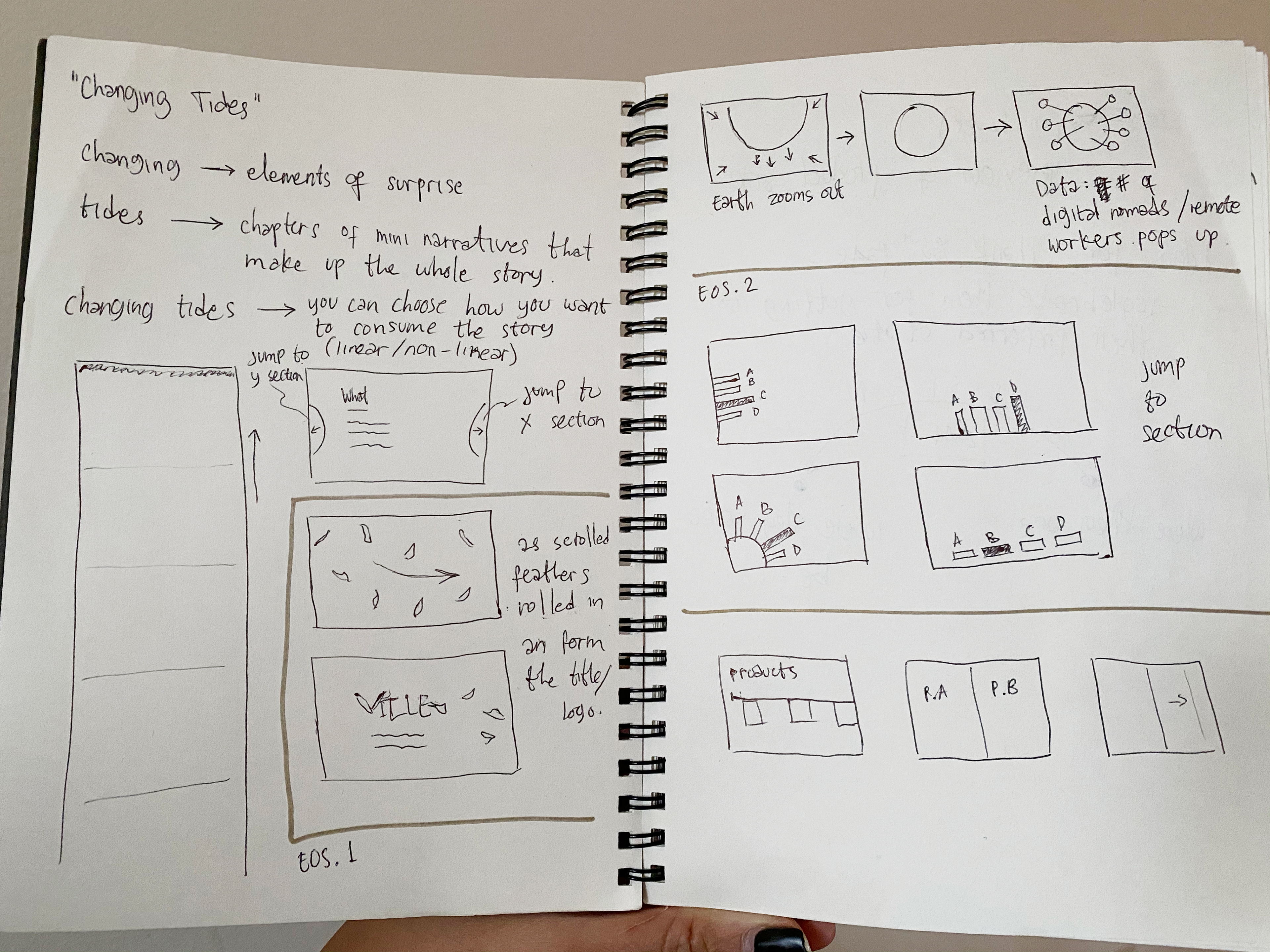 Website flow and interaction sketches